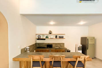 The villa is composed of 3 bedrooms, a fully equipped kitchen, and 3 bathrooms.